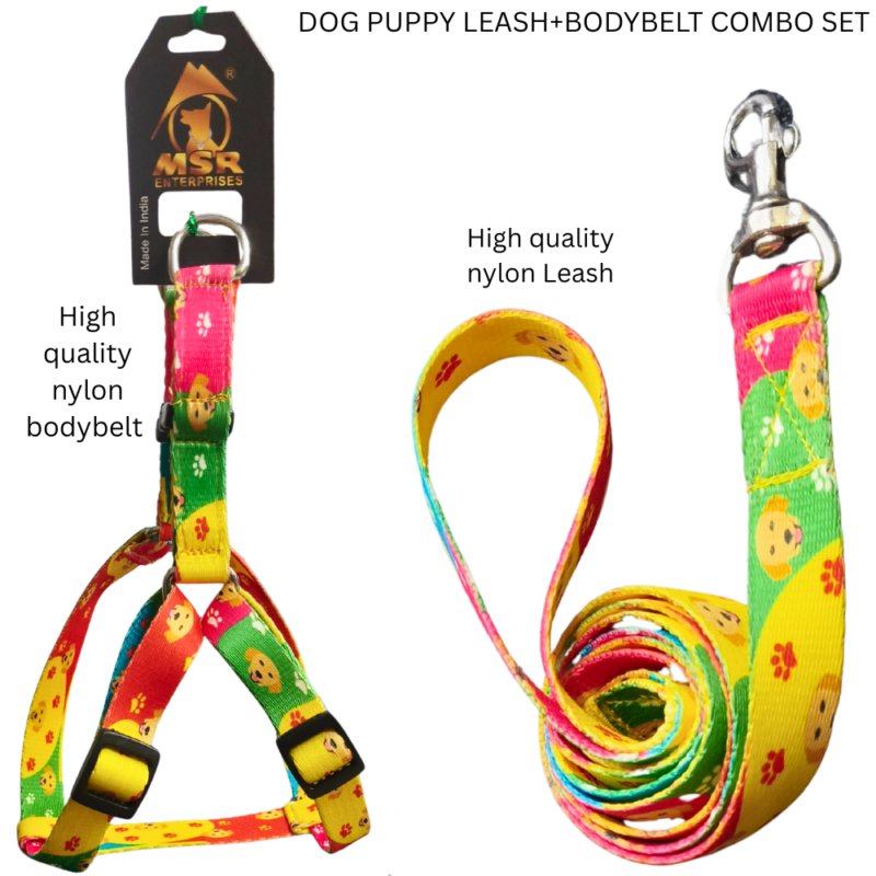 MSR Printed Nylon Collar + Leash +Bodybelt Combo Set