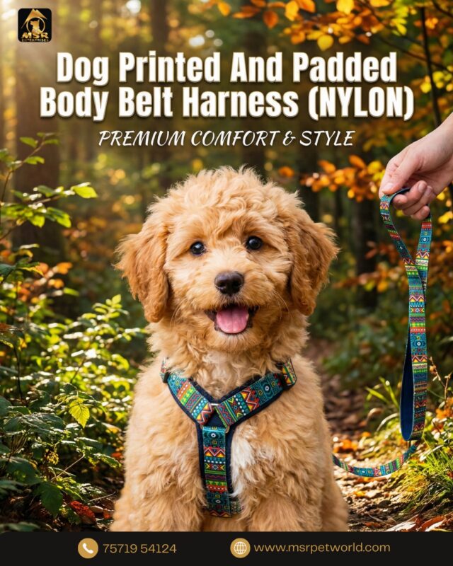 Dog Printed And Padded Body Belt Harness (NYLON)