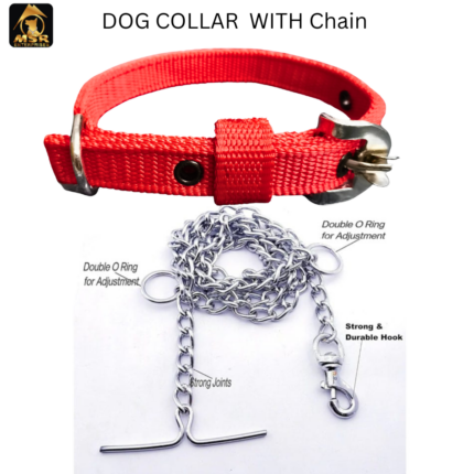 Chain Dog Puppy Belt Combo Nylon Collar with Heavy Chain Leash Dog Collar & Chain (Small,Medium,Large-color Red)