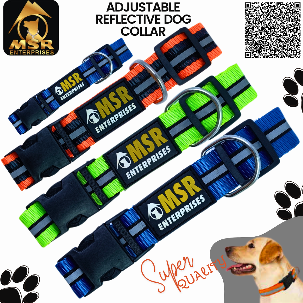 The Adjustable Refractive Dog Collar is a high-quality, multicolor printed collar designed for the safety and style of your beloved pet. With its adjustable feature and different available sizes, this collar ensures a perfect fit for dogs of all breeds and ages. The SR buckle adds an extra layer of security, giving you peace of mind while walking or playing with your furry friend. The vibrant and eye-catching design not only makes your dog stand out but also provides added visibility during walks or outdoor activities. Made with durable materials, this collar is built to last and withstand the wear and tear of everyday use. Whether its for training, everyday wear, or special occasions, this adjustable printed dog collar is the perfect accessory for your canine companion.