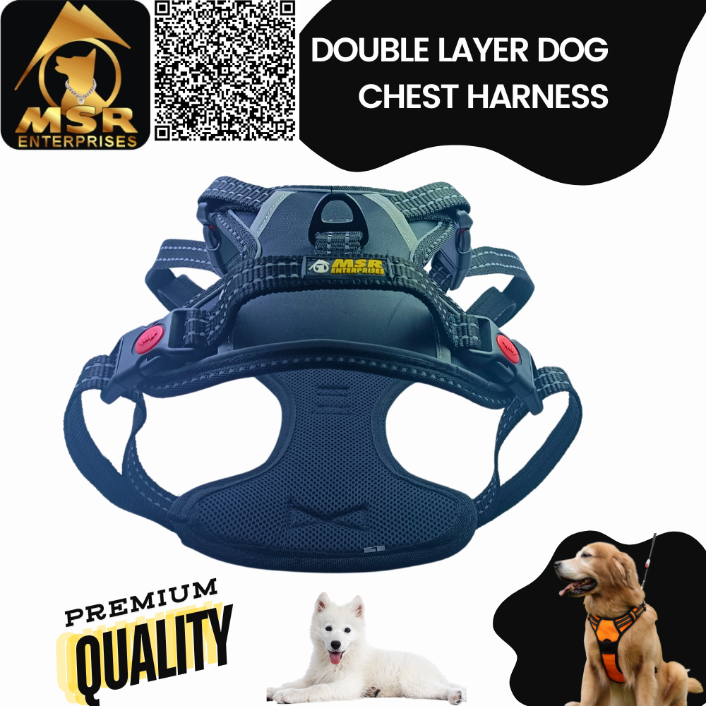 Q: What sizes are available for the Double Layer Dog Chest Harness?A: The harness is available in different sizes to accommodate various breeds and body types of dogs.