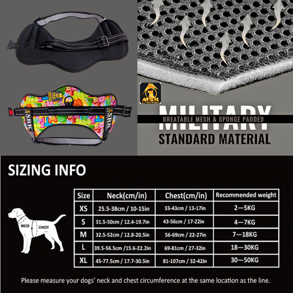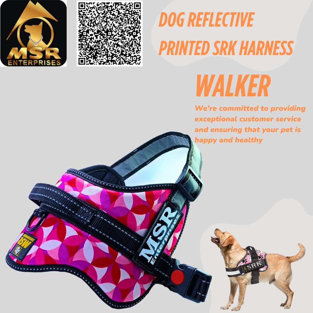 Trust SRK Enterprises for high-quality pet accessories that prioritize your pet’s comfort and your peace of mind. Our products are crafted with love and dedication, reflecting our commitment to the well-being of your pets. Enjoy a worry-free and enjoyable time with your furry friend with our All Size Dog Reflective Printed SRK K9 Harness